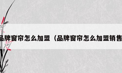 5、加盟品牌 无论是窗帘布艺还是百叶窗帘等等,加盟品牌商是帮助开窗帘店宣传,帮助店铺累积人气。选址 确定好加盟窗帘品牌之後,即可著手开始准备将选择店面地址,不论是实体经营店还是网路销售店,都要通过仔细的思量,还可以通过家人朋友的建议进行选择,在窗帘行业的竞争也是比较大。