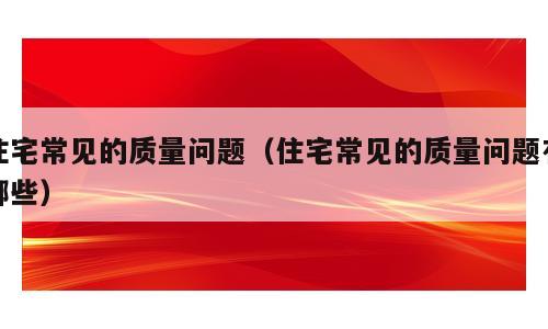 常见的房屋质量问题有哪些